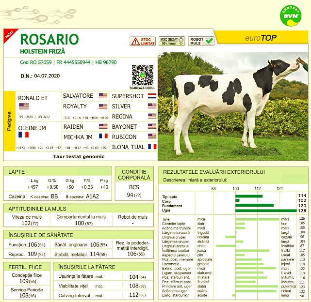 Rosario, alături de alți tauri de top oferiți prin partenerii noștri din Franta, vin să aducă plus valoare în fermele de Holstein din Romania.
